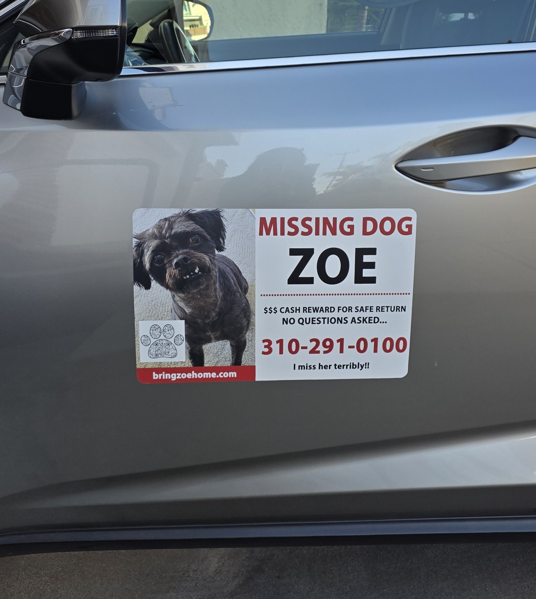 If you have any information on Zoe’s whereabouts, please call immediately anytime. If you can, please take a picture and text it to me. I take every tip seriously.